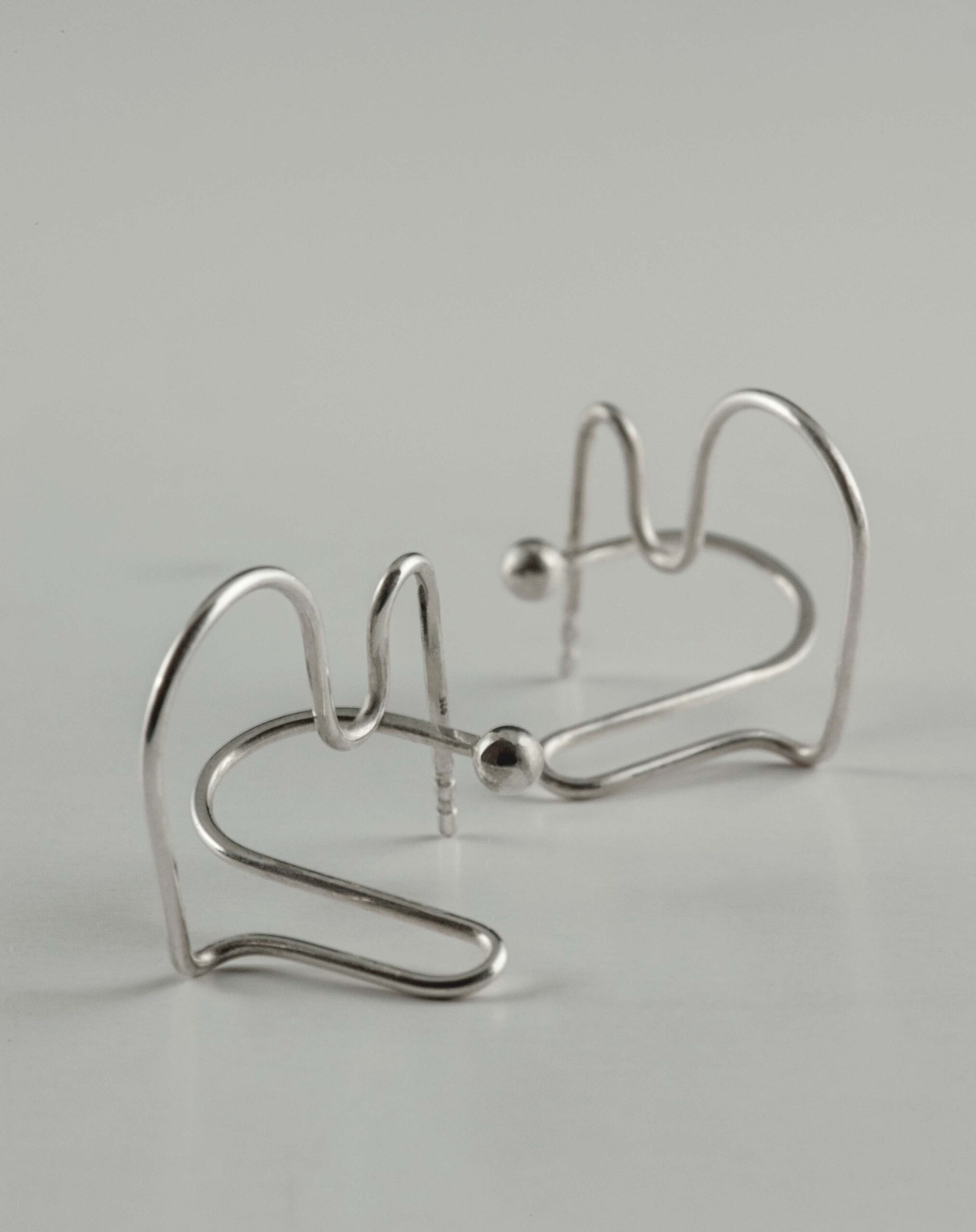 Puzzle earrings are part of an ongoing collection which inspired by the brain teaser metal wire puzzle game in 90’s childhood. Playfully subver- sive with turns and balance in and out of the negative space.