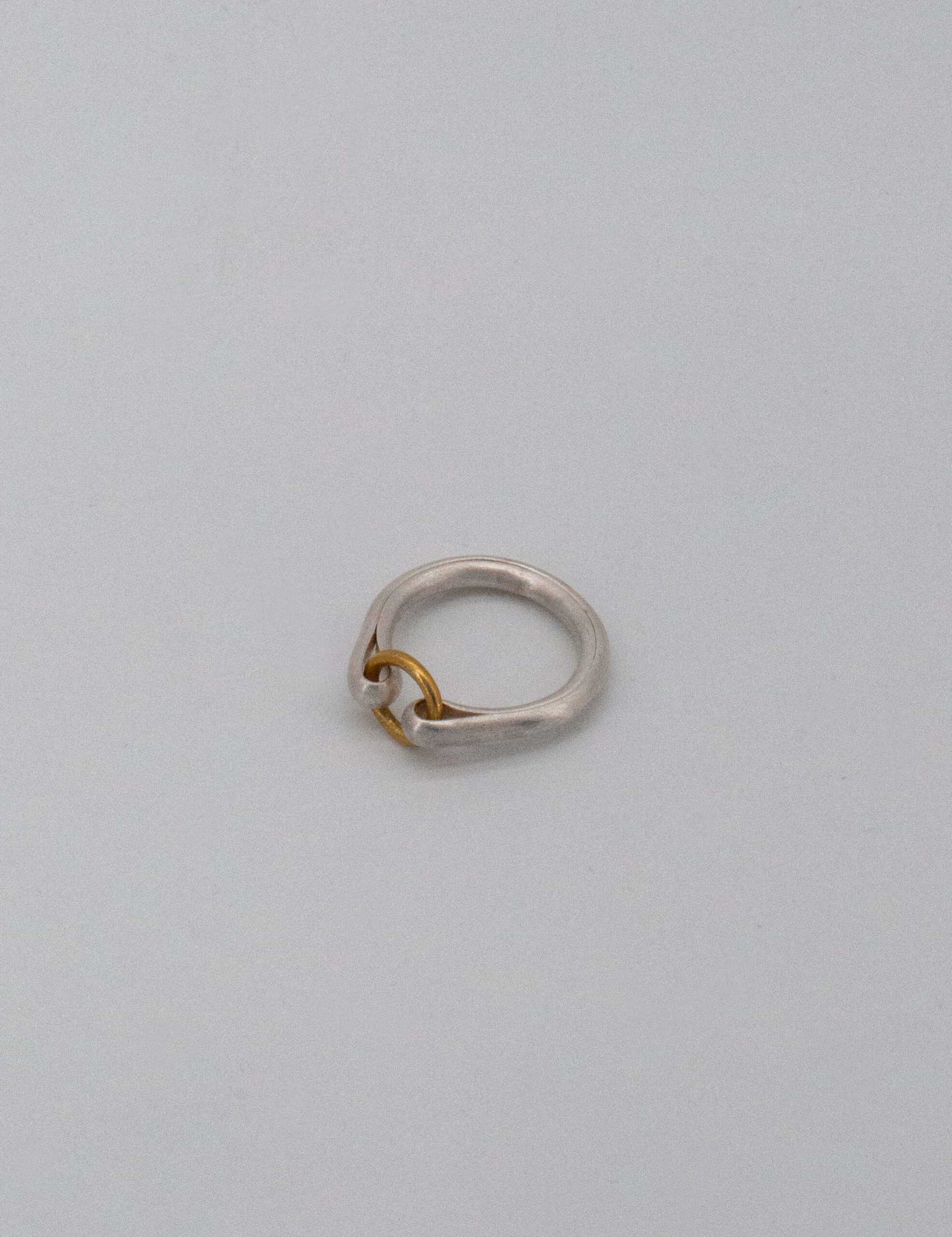 Silver Eclipse Ring with pure gold lunar circle / Ring band in 925 silver, oval lunar circle in 999 pure gold.