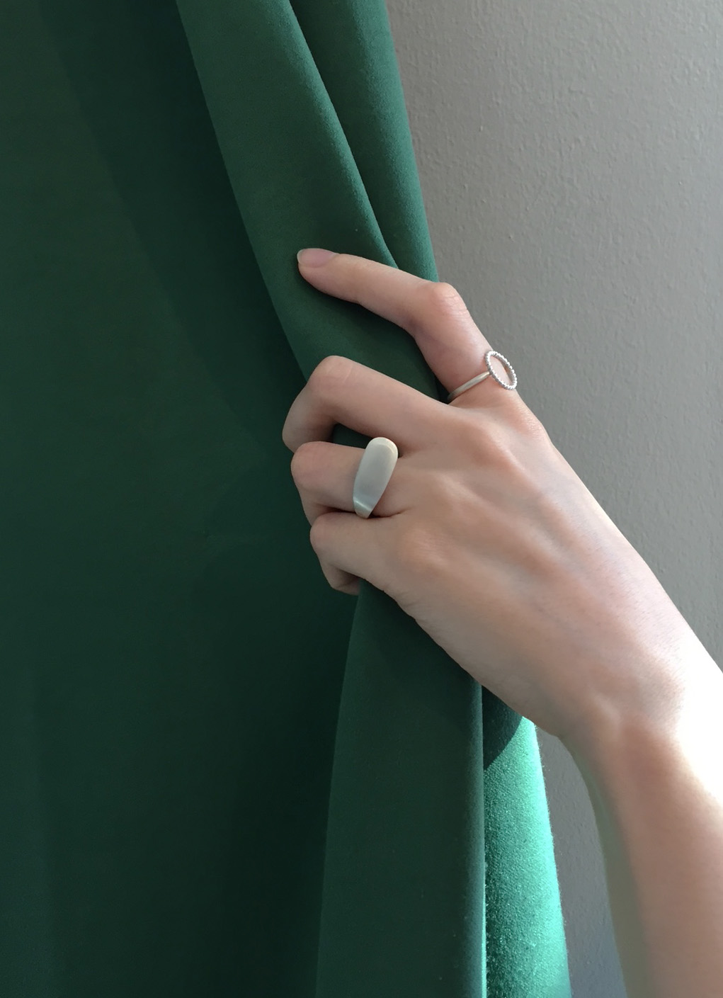Saturates with curvaceous form between fingers and jewlery. Flip ring is inspired by water in motion which always leave a circular rise form moves along the flow path. The brushed and polished finishing reveal the smooth and effortless curves of liquid.