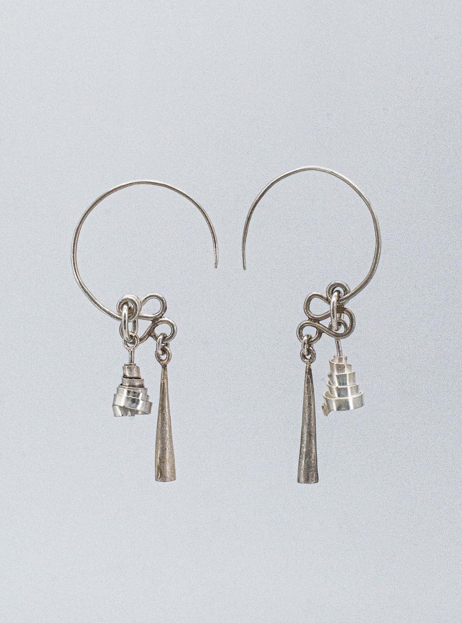 Grotto Hoops take inspiration from the distinctive metal ornament of the oorijzer, a traditional Dutch headpiece worn with folk costume in the 19th century. Drawn from a continuous wire, the earrings flow into conical ends, celebrating movement in a playful twist for daily wear.